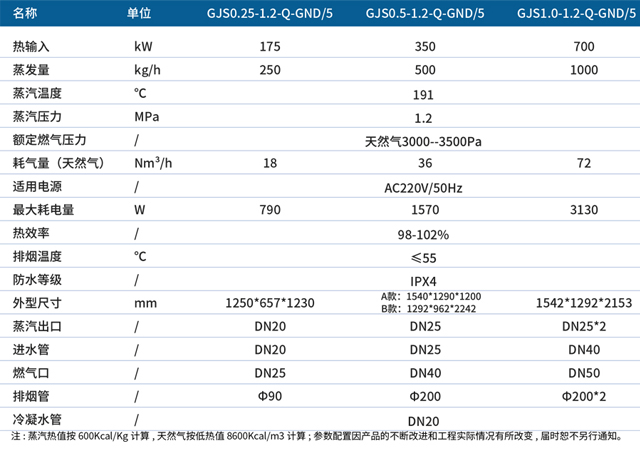 模组式全预混蒸汽发生器型号与技术参数