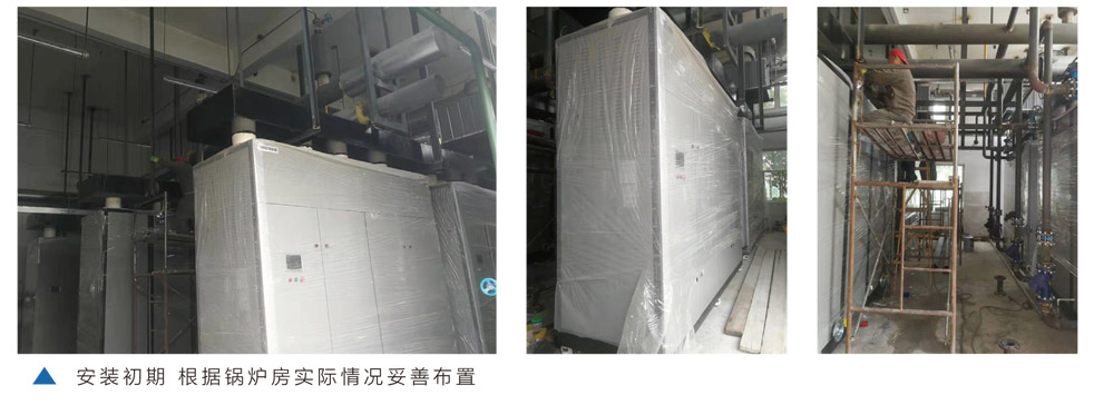 在项目初期,我司安排技术人员对现场进行勘测,了解客户需求,根据客户实际情况提供最佳的设计方案;选用6台1600KW型号为”N5PK1600-GND"的冷凝式低氮燃气热水模块炉。