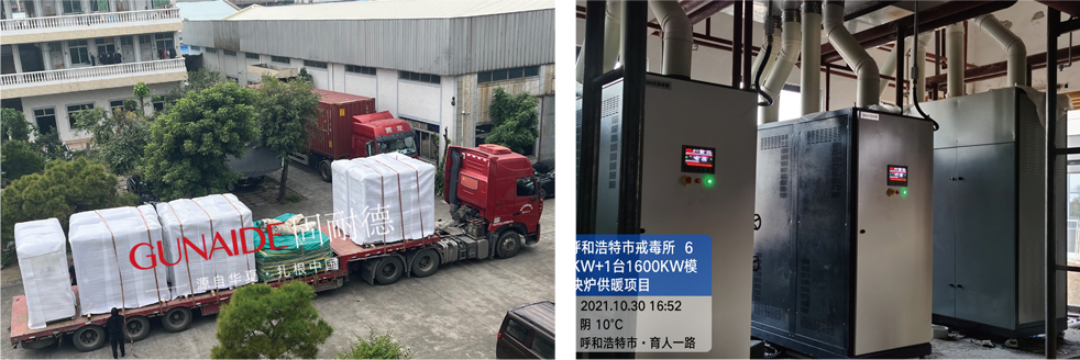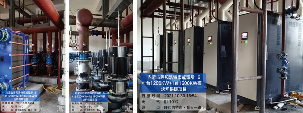 本次项目为拘留所、戒毒所和看守所三地集中供暖建设,实际供暖面积约为11万平方米。前期,经过我司工程师实地勘察设计,决定采用6台1200KW和1台1600KW的冷凝式燃气热水模块炉。