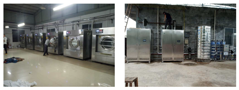 广西省桂平市某洗衣厂使用我司两台型号为GND1.0-0.7的冷凝式速能蒸汽能机组,主要为洗衣提供蒸汽加热和杀菌消毒。工厂原使用两吨燃气传统锅炉,现改用两台一吨固耐德蒸汽能,综合节能达到30%效果优越,且方便,无需锅炉工,工人可以自己操作,即开即开! 节能安全、操作方便、随用随开、省钱、省力、省心、生产效益提高!