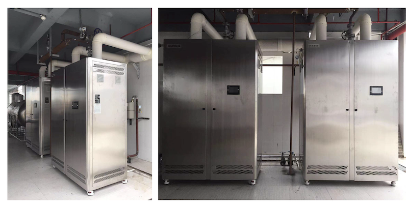珠海某酒厂之前用的是柴油锅炉,使用成本是液化气的1.5 倍,能耗大,热效率低。同时对环境的污染也较为严重。 经我司当地经销商与工程师实地勘察,为客户量身定制了一套环保节能改造方案,使用2台1T的速能蒸汽能机组。排烟温度低至53度,使用PVC材质排烟管,降低安装及材料成本。完美的解决了客户需求,不但节能效果显著,还省去了报批,年审等繁琐手续与费用。