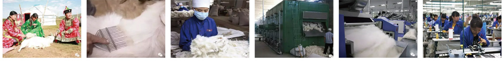 主要流程包括:抓绒、收绒、选绒、洗绒、梳绒、染色、纺线编织等。其中洗绒、梳绒一直是加工中最关键的环节,相当于提纯步骤,决定了羊绒的纯度和品质。